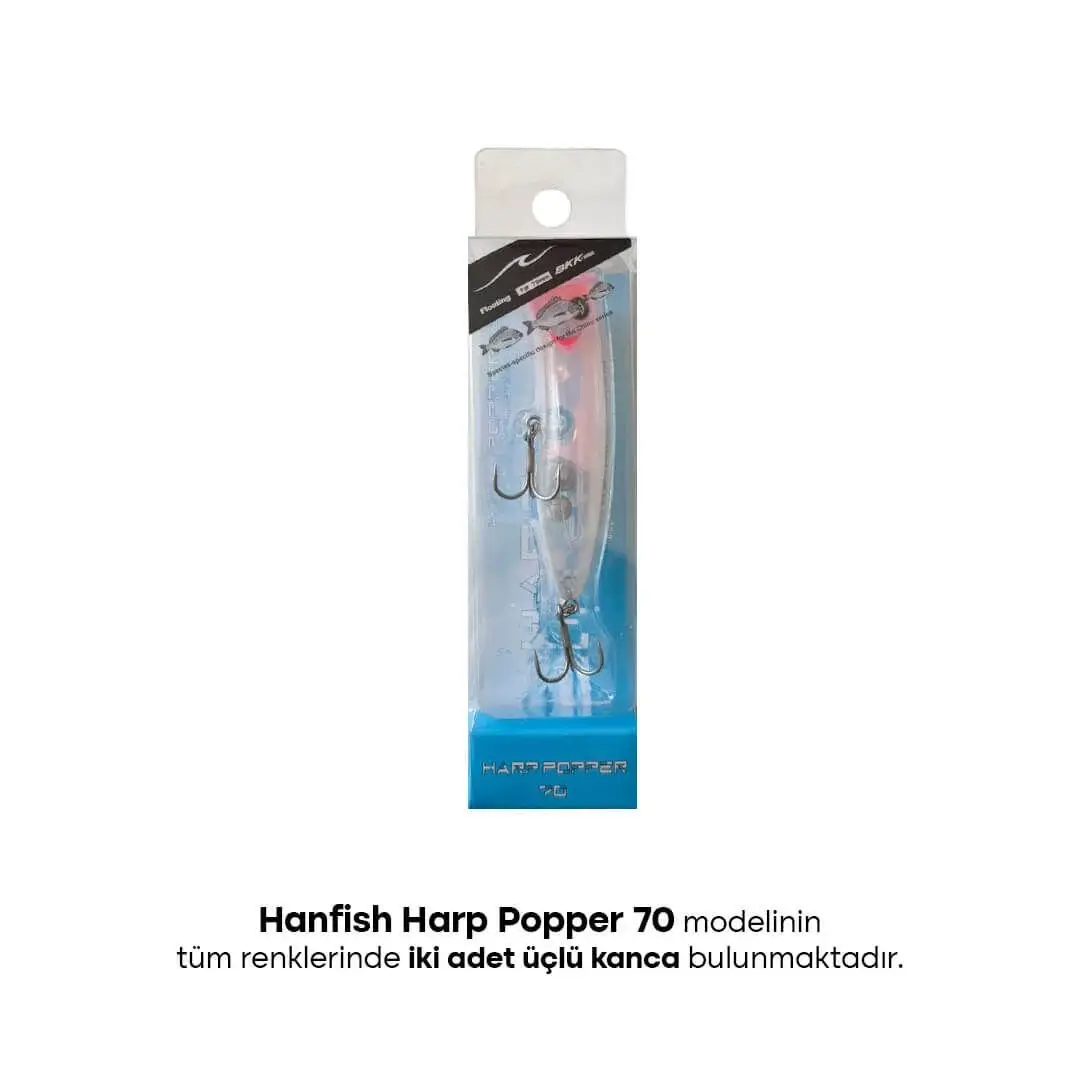 Hanfish Harp Popper 70: Dünya genelinde balık avıcıları tarafından seyir zevki ve kullanımı en popüler olarak kabul görülen model olan popper modelidir.