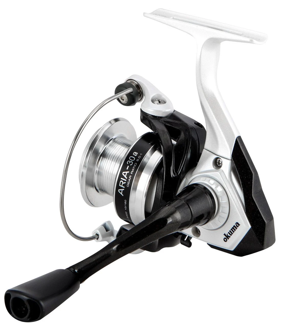 Okuma Aria spin makinesi, siyah beyaz renkleri ve en yeni Okuma gövde tasarımı ile dikkat çekiyor. Makinede CFR teknolojisi, Hassas makine kesim pirinç pinyon dişlisi, daha rahat atış için LCS misina kontrollü makara ve paslanmaz çelik makine teli bir arada. Aria genel amaçlı bir makine ve balığa başlayanlar için iyi bir seçim.