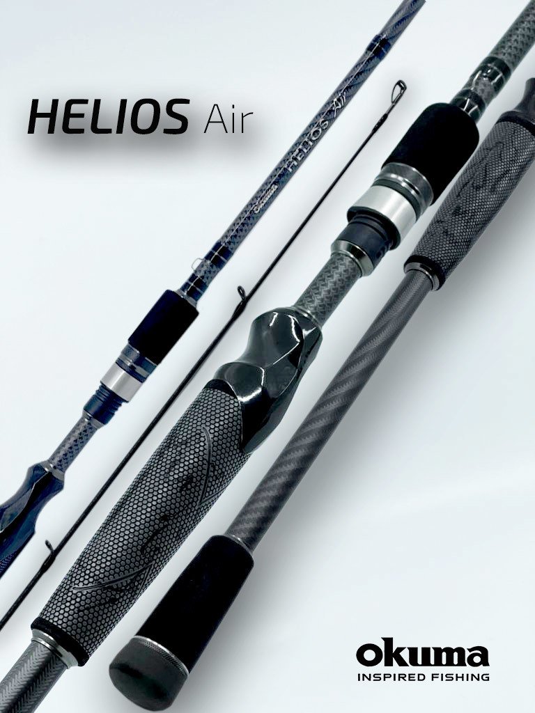 Okuma Helios Air Kamışında winn kavrama tasarımı, Okuma'nın eşsiz iskeleti ve Japon karbon enjeksiyonlu makine yatağı, SS316 paslanmaz çelik ve zirkonyum dolanmayı önleyen çerçeve halkaları ve ayrıca 40T+46T toray karbon, ultra hafif ve iletken gövde kullanıldı.