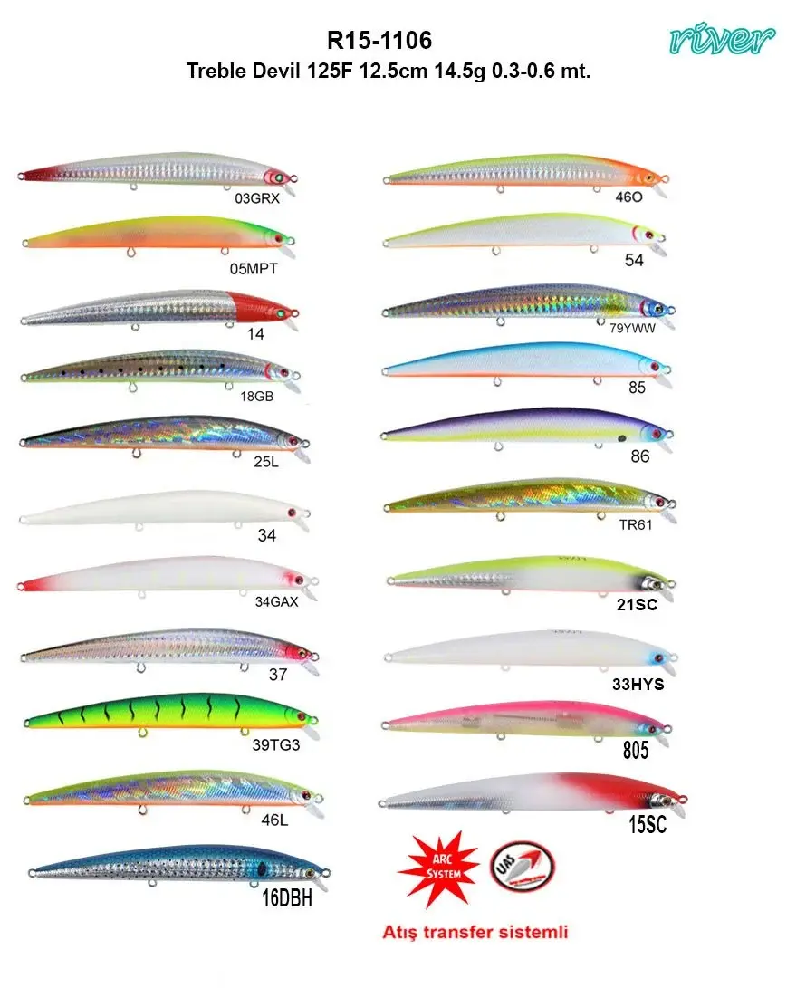 River Treble Devil 125F ARC 12.5cm 14.5gr 0.3-0.6 Metre dalış mesafesi vardır.