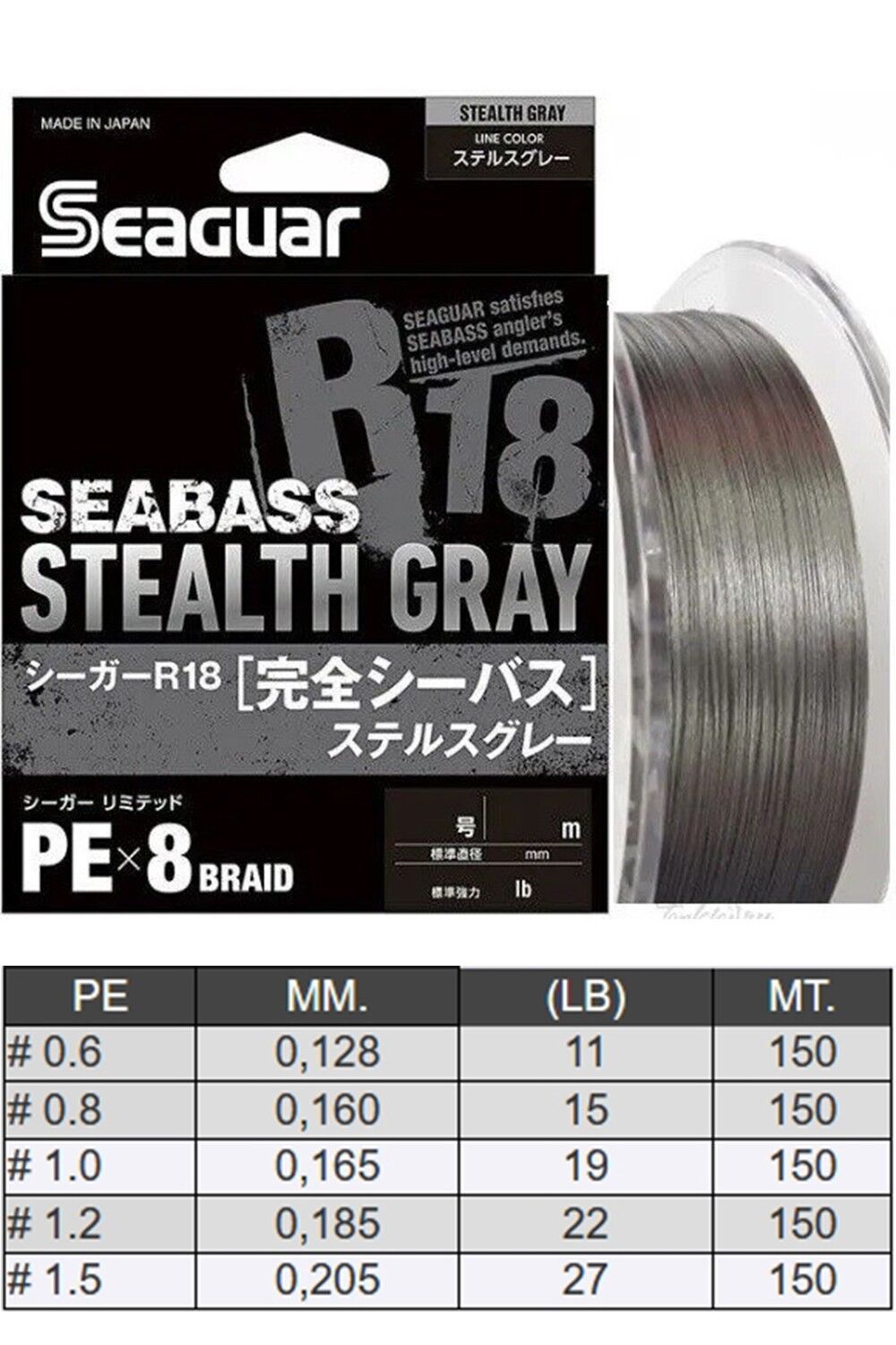 Seaguar Stealth Gray PE 8 Örgü Spin İp Misina 150mt Gri